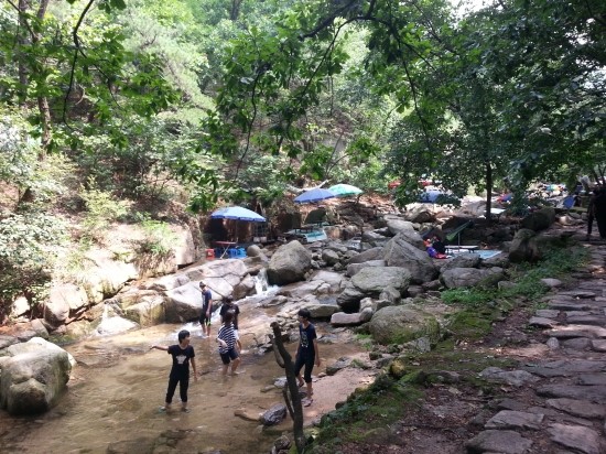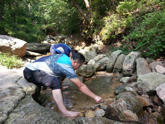하산 하다가 계곡물에서 발을 담구고