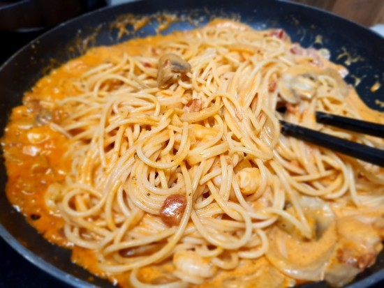 삶은 면을 넣고 뽁으면서 소스를 넣어줌..
