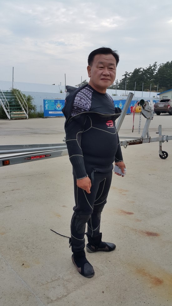 비응도에서 보트가 작기때문에 슈트를 다 착용하고
