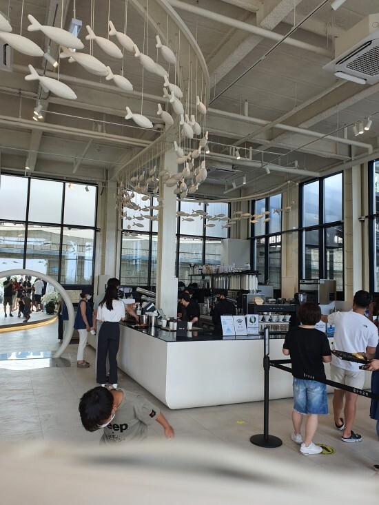 천장엔 물고기 모빌아트가 설치되어 흐름을 유도하고..~
