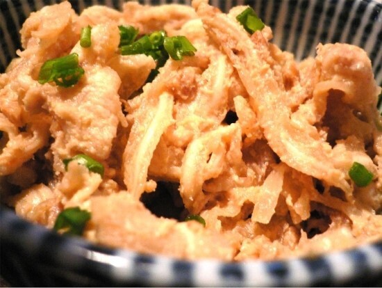 요나구니 섬의 요리 중 유명한 것은 미미가(ミミガー)라는 돼지의 귀껍질로 만든 육포 비슷한 안주, 미미가는 오키나와 토속주 아와모리(泡盛)와의 궁합이 완벽하다고 한다.