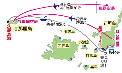 요나구니 섬으로 가는 방법은 주로 2가지가 있다.