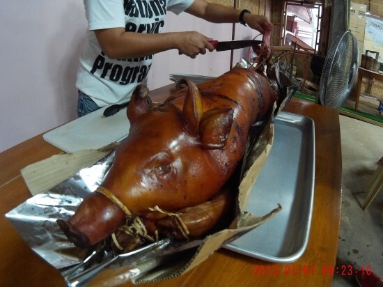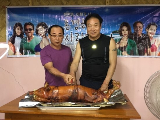 다이빙 나가기 전에 미리 레촌(바베큐)를 주문하고... 글구 새우등...