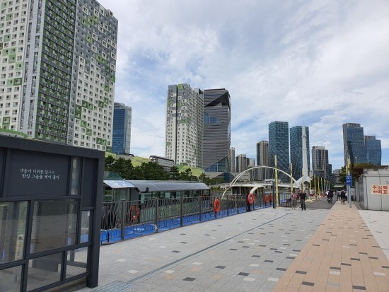 워터프론트 바다와 연결되는 다리위