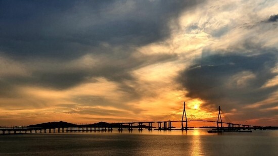 서해바다중에 인천대교 교각이 멋지게 반겨준다