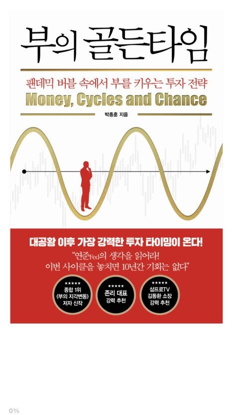 코로나19 이후 세계경제의 향방을 예측하기 힘들다. 그러나 위기의 시그널은 수년간 증폭되어 왔다. 근 10년 넘게 이어진 장기 경기 호황과 엄청난 유동성 장세 속에서 많은 경제학자들은 이미 수차례 위기를 경고해왔다. 위기의 근본은 버블의 시작과 끝, 바로 부채 사이클이다. 특히 이번 사이클을 연장하는 것은 팬데믹 충격을 완화하기 위해 무제한 돈 풀기에 나선 미국 연방준비제도이사회(FED)다. 연일 사상 최고가를 경신하는 주요 지표는 전 세계를 어디로 이끌고 있으며, 이에 대응하는 연준의 정책들은 과연 버블 붕괴를 막을 수 있을 것인가. 『부의 골든타임』은 한 치 앞도 예견하기 힘든 포스트 코로나 시대의 글로벌 경제! 주식, 달러, 금, 채권 투자까지 박종훈 KBS 경제전문기자가 더욱 뜨겁게 타오르는 세계경제의 버블 속에서 당신의 부를 키우는 전략을 제시한다.