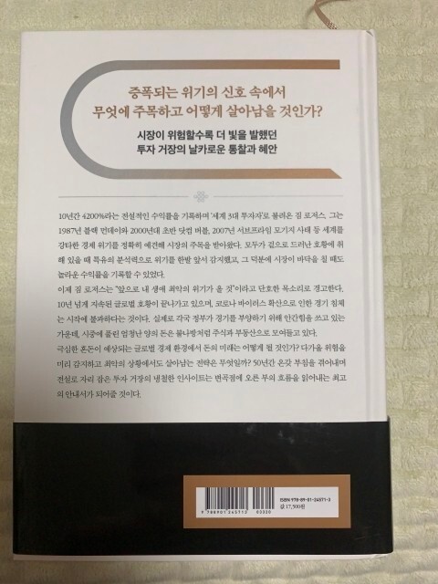 몇 번의 굵직한 경제 위기와 세상의 변화를 겪어온 로저스는 불황기의 투자는 호황기의 투자와 완전히 달라야 한다고 강조한다. 실제로 그는 위기에 더욱 빛을 발한 투자자이기도 하다. 군수산업은 이제 한물갔다고 생각하던 시절, 남들의 비웃음을 당하면서도 록히드 마틴 주식을 과감히 사들였고, 그 결과 100배가 넘는 시세차익을 올렸다. 1987년 블랙 먼데이도 빼놓을 수 없다. 당시 로저스는 과열된 시장에 대한 반작용으로 머지않아 대폭락이 나타날 것이라 말했지만 누구도 그의 말을 듣지 않았다. 그러나 블랙 먼데이 당일, 단 하루 동안 뉴욕 증시가 22.6% 하락했는데 이는 미국 증시 역사상 최대 하락폭으로 지금까지도 깨지지 않는 기록이다. 대부분의 투자자들이 엄청난 손실을 입었지만, 미리 폭락을 예측한 로저스는 보유한 주식을 모두 공매도하고 큰 시세 차익을 올릴 수 있었다.