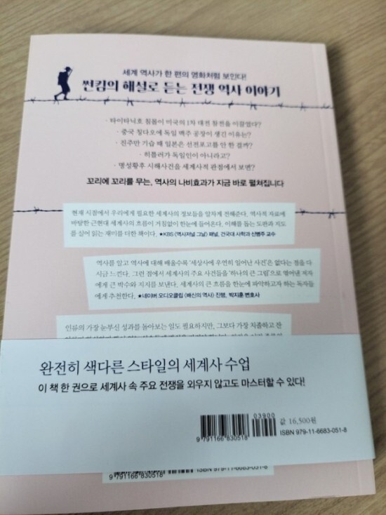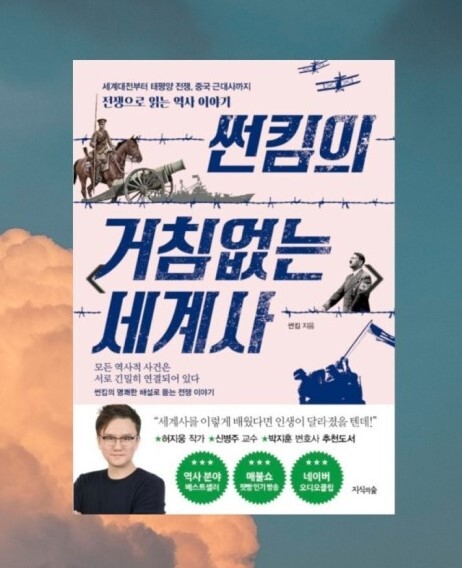 한 편의 영화처럼 읽는 세계사 속 전쟁 이야기 그동안 너무 지루한 세계사를 만났거나, 너무 뻔한 세계사 수업만 겪었다면 이제는 썬킴의 세계사를 만날 차례다. 한 번 읽는 것만으로도 세계사의 주요 흐름을 파악하고, 배울 수 있는 세계사 수업을 담았다. ‘역사 스토리텔러’이자 ‘역사 개그맨’으로 불리는 썬킴의 첫 역사 책이기도 하다. 1차 세계대전, 2차 세계대전, 태평양 전쟁, 중국 근대사가 정리되어 있고, 다양한 사진 자료와 함께 썬킴만의 해설이 가미된 역사 관련 영화 해설을 추가했다. 전쟁사를 마치 영화 줄거리처럼 설명해주는 저자의 친근하고 과감한 이야기를 단번에 읽어 내려가 보자. 이 책 한 권으로 우리가 그동안 파편적으로 기억하고 있던 전쟁사를 더 이상 외우지 않고도 기억하게 될 것이다. 전쟁마다 주요 사건을 짚어주는 것을 물론, 당시 시대상과 문화적인 측면, 인물에 얽힌 비화까지 흥미롭게 전하는 내용을 읽어 내려가다 보면 그 흐름을 단번에 이해할 수 있을 것이다. 딱딱한 이론이 이어지는 수업 대신, 더 재밌는 세계사 이야기를 원하는 이들에게는 완전히 색다른 스타일의 세계사 수업이 될 것이다.