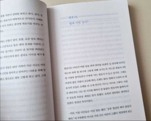 그럼에도 불구하고 어려움에 놓인 사람들에게 크고 작은 도움을 줄 수 있는 변호사 직무를 지속해 나가겠다는 책임감과 직업 윤리는 책 곳곳에서 어렵지 않게 느낄 수 있다. 변호사들의 모든 활동이 정의와 대의를 위한 것이라고 할 수는 없겠지만, 옳지 않다고, 바람직하지 않다고 생각하는 비양심적인 일들과는 선명하게 거리를 두면서 의뢰인을 돕겠다는 확고한 가치관, 자신감, 자부심도 느껴진다.