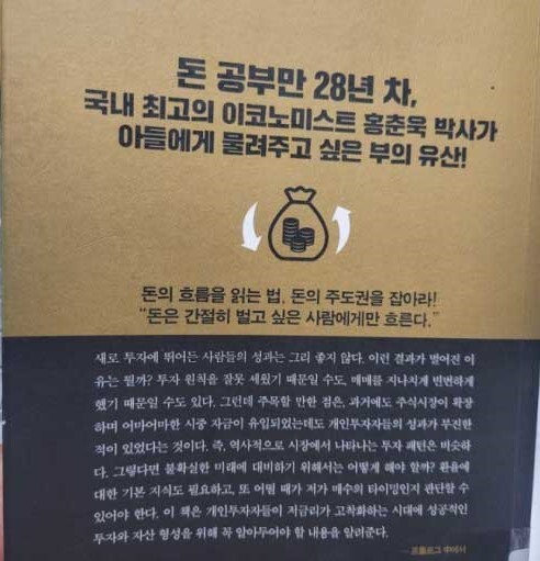 이 책은 국내 최고의 이코노미스트 홍춘욱 박사가 돈 공부만 28년 한 모든 노하우를 담아 경제 흐름과 부동산, 주식, 투자에 필요한 현실적인 조언, 즉 돈의 흐름을 읽는 법을 담았다. 돈의 주도권을 잡기 위해서 우리는 반드시 돈의 흐름을 읽는 법을 알아야 한다. 홍춘욱 박사는 아들에게 물려줄 부의 유산으로 ‘돈의 흐름을 읽는 법’을 꼽았고, 홍 박사가 가진 돈에 관한 인사이트를 집대성해 불확실한 시대에 나를 지키는 현실적인 투자 방법을 알려주고 있다.