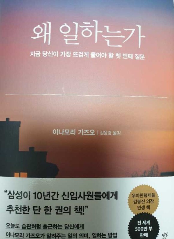 ?왜 일하는가?는 부도 직전의 중소기업에 간신히 취업해 하루하루 패잔병처럼 살던 한 젊은이가, 세계 100대 기업 중 하나가 된 첨단 전자부품 제조회사를 세워 연매출 16조 원 조직의 총수가 되기까지 60여 년의 시간 동안 마음속에 차곡차곡 담아온 일과 삶에 대한 절절한 고민과 태도를 엮은 책이다. 지난 10여 년간 직장인들 사이에서 일에 대한 관점을 전복시킨 이 책의 저자는 바로 동양의 살아 있는 ‘경영의 신’으로 불리는 이나모리 가즈오 회장이다.