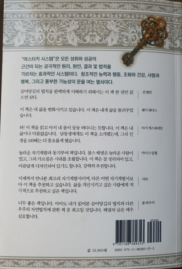 “마스터키”를 사용하면, 독자는 더 위대하고 나은 인격을 갖추게 될 것이며, 어떤 가치 있는 목적도 달성할 새로운 능력을 지니고 삶의 아름다움과 경이로움을 즐길 수 있게 될 것이다.”