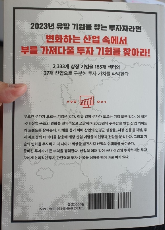 2022년 코로나19 팬데믹 이후 대규모 유동성 공급으로 촉발된 높은 인플레이션을 잡기 위해 미국 연방준비은행은 강력한 긴축 정책을 시행했다. 긴축 정책은 세계적 하락장을 만들며 투자자의 투자 심리를 위축시켰다. 그러나 영원한 하락장은 없다. 이 책은 지금의 하락장에서 이겨내는 투자 기회를 찾기 위한 바이블이다. 투자자는 이 책을 통해 하락장으로 가치가 평가절하된 기업을 찾아내고, 유망 기업의 내재 가치를 객관적으로 판단할 수 있다. 더 나아가 자신이 주목하는 산업과 더불어 대한민국이라는 하나의 산업 구조를 이해해, 2023년 산업 투자 포트폴리오를 다각화할 수 있을 것이다.
