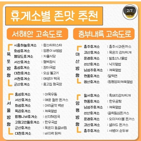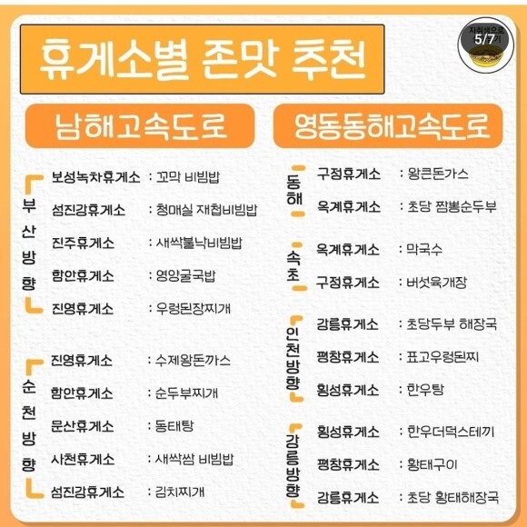 휴가 떠날때 전국 휴게소별 존맛탱 메뉴모음