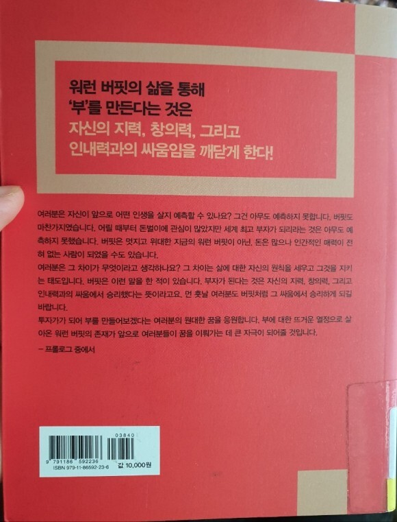워런은 어린 시절부터 돈의 원리를 궁금해 했고 그 수수께끼를 풀기 위해 다양한 일을 직접 경험하며 자신만의 노하우를 쌓아갔다. 신문을 배달하며 신용을 배웠고 콜라를 팔며 이윤이란 개념을 알았으며 소액 투자를 통해 기다리는 방법을 배웠다. 그리고 그런 노하우를 차곡차곡 쌓아 투자제국 버크셔 해서웨이를 세우고 엄청난 수익으로 세계 최고 부자의 반열에 올랐다. 그는 정직하게 노동하였고, 번 돈을 절약했으며, 성실하게 모은 돈을 적소에 투자하고 꼬박꼬박 세금을 내며 정도를 걸었다. 그리고 그렇게 번 돈을 빌 게이츠 재단에 기부하며 세상 사람들과 나누었다.