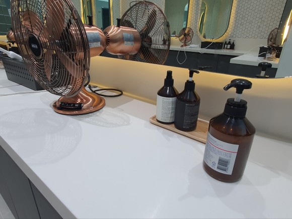 다이빙후 드라이어와 선풍기, 머리감고 말리고, 세면도구와 스킨 로션들까지 완비.