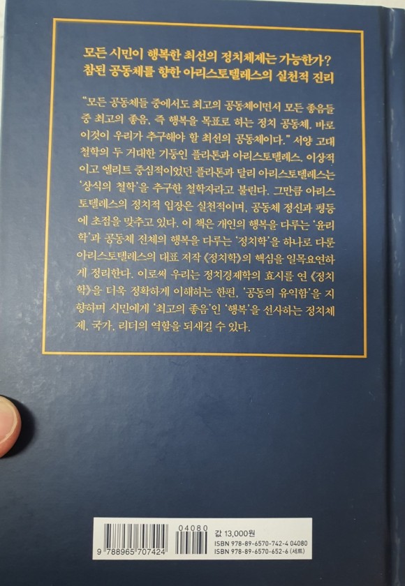 플라톤과 함께 서양 고대 철학의 두 거대한 봉우리를 이루는 아리스토텔레스. 이상적이고 엘리트 중심적이었던 플라톤과 달리 아리스토텔레스는 ‘상식의 철학’을 추구한 철학자라 불린다. 우리가 흔히 들어 알고 있는 ‘인간은 사회적 동물이다’라는 말 또한 ‘인간은 정치적 동물(폴리티콘 존)’이라고 한 아리스토텔레스의 정의에 그 기원을 두고 있다. 아리스토텔레스의 수많은 저작 중에서도 정치경제학의 효시라 불리는 《정치학》은 도덕성에 기반을 둔 윤리적 정치체제, 최고의 좋음인 ‘행복’에 이르는 정치 공동체의 모습을 치밀하게 사유한 서양 고대 철학의 정수라 할 수 있다.