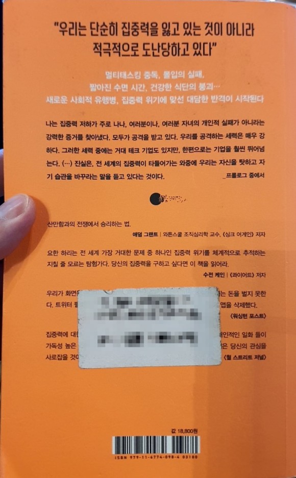 도둑맞은 집중력 Stolen Focus -요한하리지음, 김하현옮김