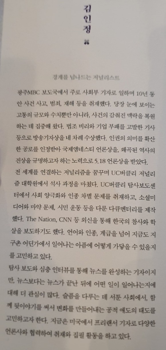 ‘지금 이 시대의 고통’을 다루는 저널리스트, 김인정이 세계를 향해 던지는 뼈아픈 질문