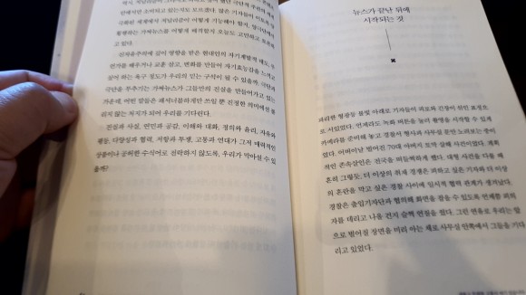 이는 많은 이들이 뉴스에 등을 돌리는 이유이기도 하다. 다양한 콘텐츠가 현란한 화면으로 눈길을 사로잡는 지금, 건조하게 사실을 전달하는 뉴스에 마음을 포개기란 점점 어려워지고 있다. 뉴스의 위기를 직면하며, 저자는 “뉴스는 세상의 수수께끼들을 보여주지만, 모든 해결책을 가지고 있지는 못한 불완전한 매체”임을 인정한다. 그러므로 뉴스는 보는 것에서 끝나는 매체가 아니라는 사실을 상기시키며, 기자와 시청자가 함께 뉴스를 완성해 가야 한다고 촉구한다.