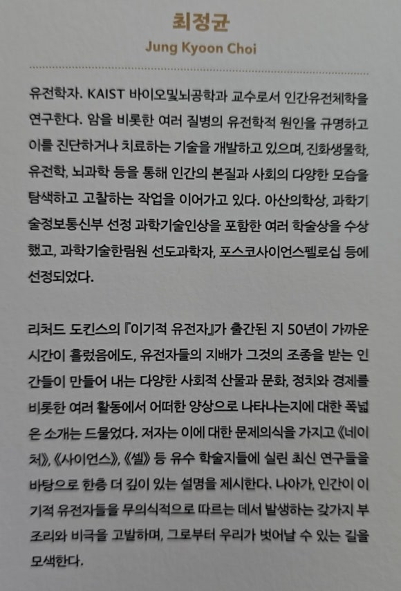 “한마디로 이 책은, 마이클 샌델이 쓴 『이기적 유전자』다.”