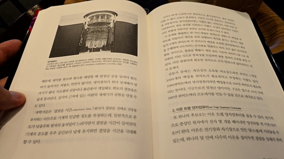 그렇다면 양자컴퓨터의 종류에는 어떤 것들이 있으며 각각의 디자인은 어떤 장단점이 있을까? 저자는 “0과 1이라는 상태가 중첩되고 얽혀서 정보를 처리하는 시스템은 모두 양자컴퓨터가 될 수 있다”고 단언한다. 따라서 양자컴퓨터의 기본 설계도 여러 가지로 나오는데, 우리나라도 공동연구를 통해 2023년 10월 세계 최초로 ‘전자스핀’을 이용한 큐비트를 개발하여 세계의 주목을 받았다.