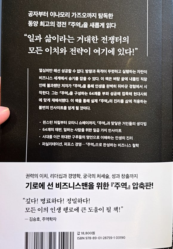 조선은 물론 전 세계 역사적으로도 손꼽히는 무인 이순신 장군. 그는 전쟁을 앞두고 『주역』 이론에 기반을 둔 역점(易占)을 쳐서 다가올 일을 예측하고 대비했다. 이순신뿐 아니라 공자, 이나모리 가즈오까지 시대와 공간을 초월해 수많은 거인들은 『주역』을 통해 세상의 이치를 되새기고 닥쳐올 위험을 이겨내는 힘을 얻었다.