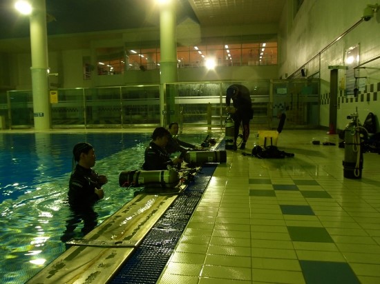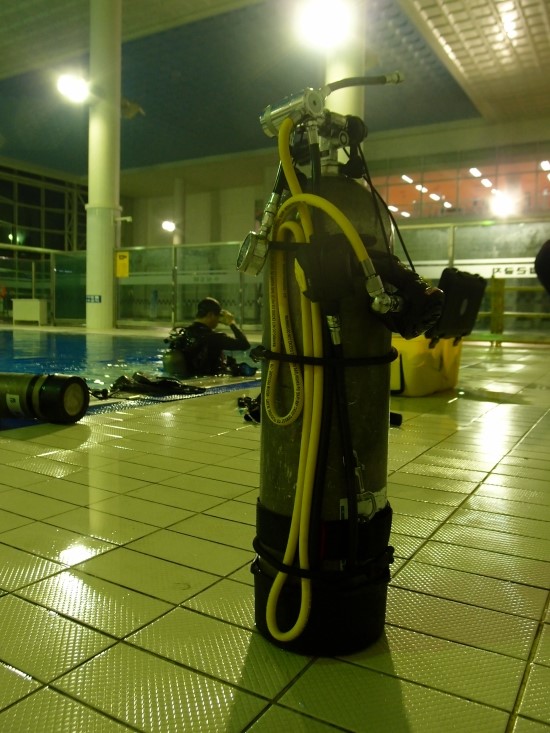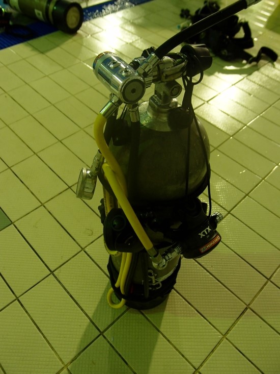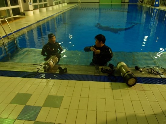 우선 하네스 장비는 착용을 하고 탱크는 입수하면서