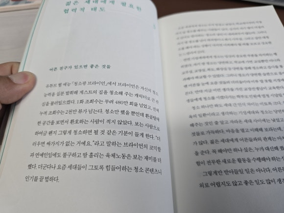갈수록 길어지는 수명 때문에 세대 갈등을 필연적 요소로 안고 살아갈 수밖에 없는 한국 사회에서 세대 충돌은 당연한 현상이며, 지금은 이를 돌파해야 할 골든타임에 이르렀음에 저자는 주목하고 있다. 가장 중요하고 기본적인 해법은 공감과 협력의 태도이다. 공멸대신 공존하자면서 서로의 영역을 침범하고 이해를 강요하는 것이 아닌, 각자의 자리에서 자신이 할 수 있는 협력을 해내는 것이 절실하다고 주장한다. 다른 세대를 향한 지적질이나 분노, 혐오가 아닌 단순한 협력적 태도를 유지하는 것만으로도 사회적 성숙이 가능하다는 것이다. 이것이 우리 사회가 협력개인의 출현을 간절히 바라는 이유인 동시에 이 책을 읽을 이유이다.