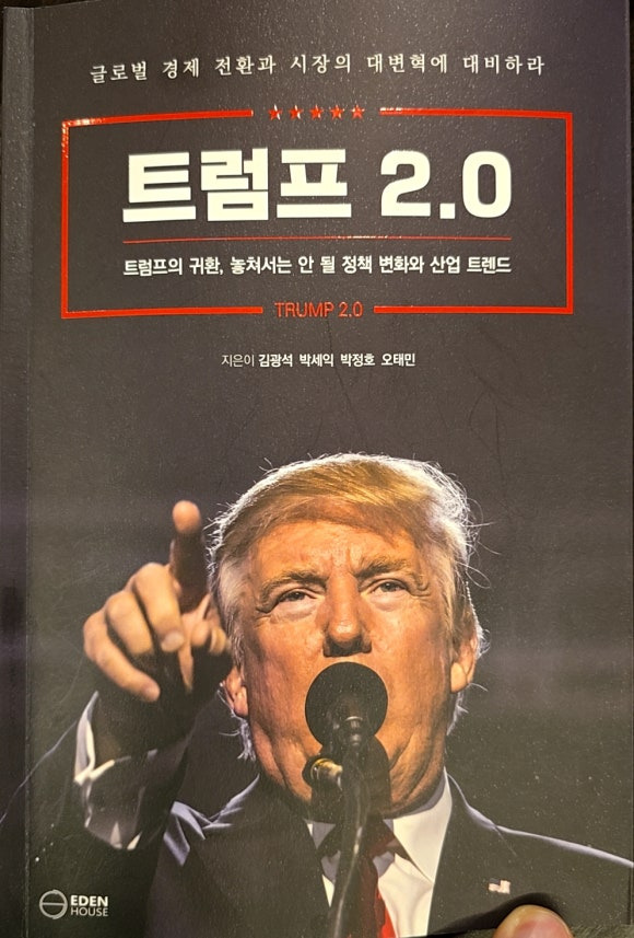그 단 하나의 현실, 트럼프 2.0 시대의 세계가 어떻게 흘러갈 것인지를 전망하는 본격적인 지침서가 나왔다. 경제경영 전문 출판사 이든하우스가 펴낸 《트럼프 2.0》이다. ‘트럼프의 귀환, 놓쳐서는 안 될 정책 변화와 산업 트렌트’라는 부제를 달고 있다. 경제, 정책, 자산투자 분야에서 요즘 가장 뜨거운 젊은 학자와 전문가가 모여 ‘끝장 토론’을 벌인 결과를 모아서 낸 책이다.