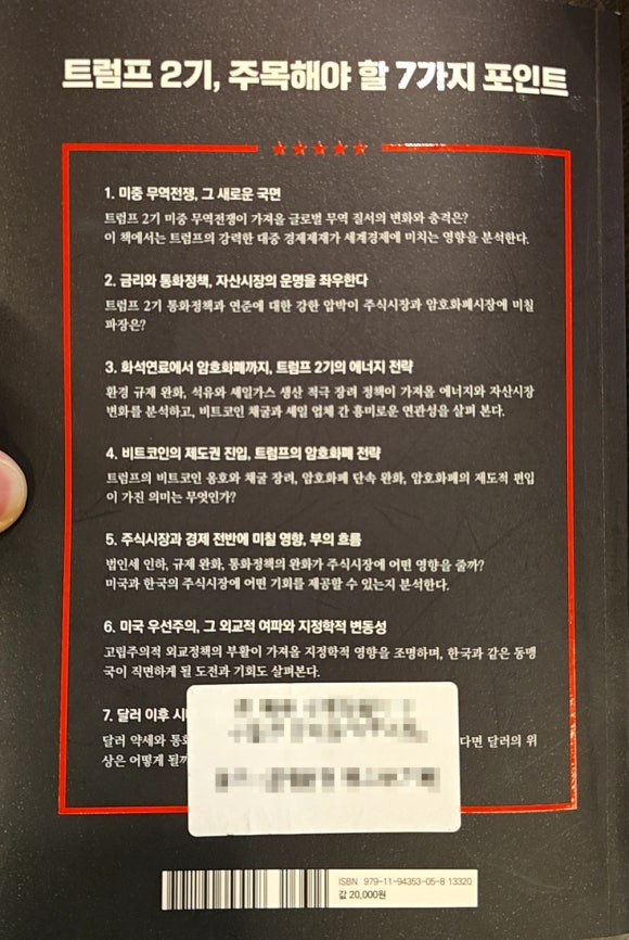 사실 미국 대선에 대한 높은 관심만큼 트럼프의 성향과 입장에 대해서는 많은 사람이 어느 정도 알고 있다고 스스로 생각한다. 하지만 이 책은 수박 겉핥기식 예단이나 이념적 잣대를 들이댄 경직된 분석과는 선을 긋는다. 트럼프 2.0 시대의 경제 흐름과 쟁점을 일목요연하게 정리한 주제별 발제도 깔끔하지만, 특히 발제에 이은 토론에서 이 책의 진가가 드러난다. 시대를 꿰뚫는 4명 저자의 과감한 논리 전개와 치열한 토론이 이 책의 재미와 깊이를 더한다. 미중 분쟁은 어떻게 전개될 것인지, 세계경제는 정말 침체일로에 접어들 것인지, 셰일가스와 암호화폐는 어떤 관계가 있는지, 트럼프가 생각하는 달러 기축통화 체제의 대안은 무엇인지, 짝수 해와 홀수 해의 주식시장, 트럼프 2.0 시대 유망 주식 등등 흥미진진한 얘깃거리로 넘쳐난다.