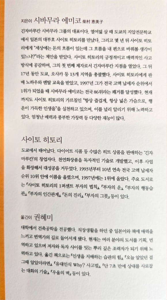 이 책은 10년 연속 일본 고액 납세자 순위 10위 안에 든 사업가 ‘사이토 히토리’의 매력과 그의 성공 비결을 담고 있다!