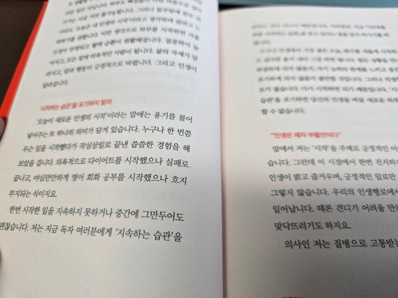 “뭔가를 시작하기는 하는데, 계속하지는 못해요”라고 고민을 털어놓는 사람이 많다. 당신도 그러한가? 만일 그렇다면, 실망하지 않아도 된다. 의욕적으로 시작한 일이 작심삼일로 끝나는 일이 당신에게만 일어나는 상황은 아니기 때문이다. 정도 차이는 있겠지만, 아마도 대다수 사람이 그렇지 않을까? 한번 시작한 일을 쉬지 않고 지속할 수 있는 사람은 매우 드물다. 새로 시작한 일을 계속하지 못해도 괜찮고, 중간에 그만두어도 괜찮다. 중간에 멈춘다고 해서 큰일이 일어나지 않는다. 멈춘 지점에서 다시 시작하거나, 새로운 일을 시작하는 것을 습관으로 만들면 된다. 작심삼일하는 자신을 탓하고 비관하는 대신 3일마다 작심삼일하면 된다.