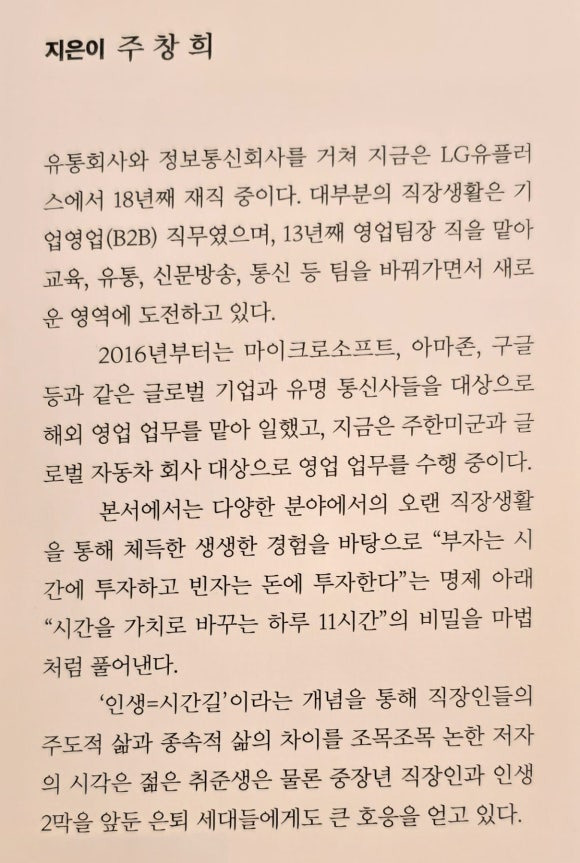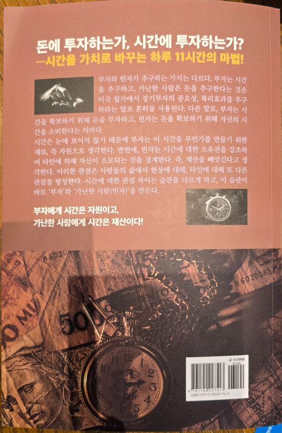 이 책은 돈과 시간의 관계를 근본적으로 생각하게 만듭니다. 저자는 "돈은 다시 벌 수 있지만, 시간은 절대 되돌릴 수 없다"는 말을 반복하며 시간의 소중함을 강조하는데요. 이 문장이야말로 이 책이 전하고자 하는 메시지의 핵심이 아닐까 합니다.