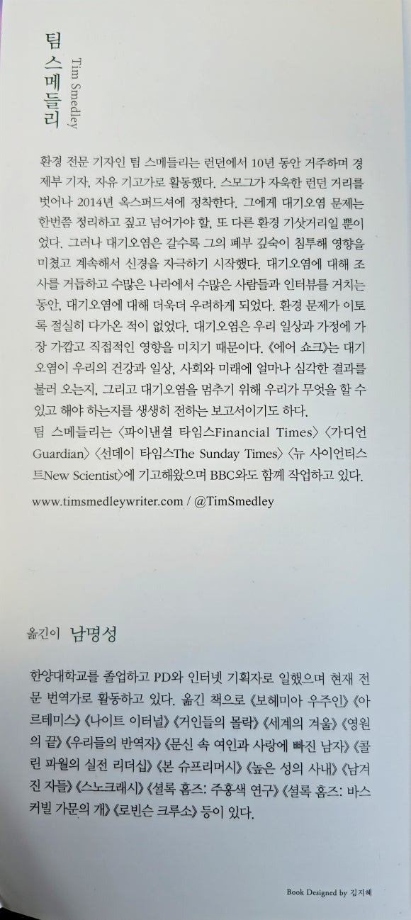 -삶의 질을 좌우하는 대기오염에 대한 가장 생생하고 의미심장한 기록, 《에어 쇼크》