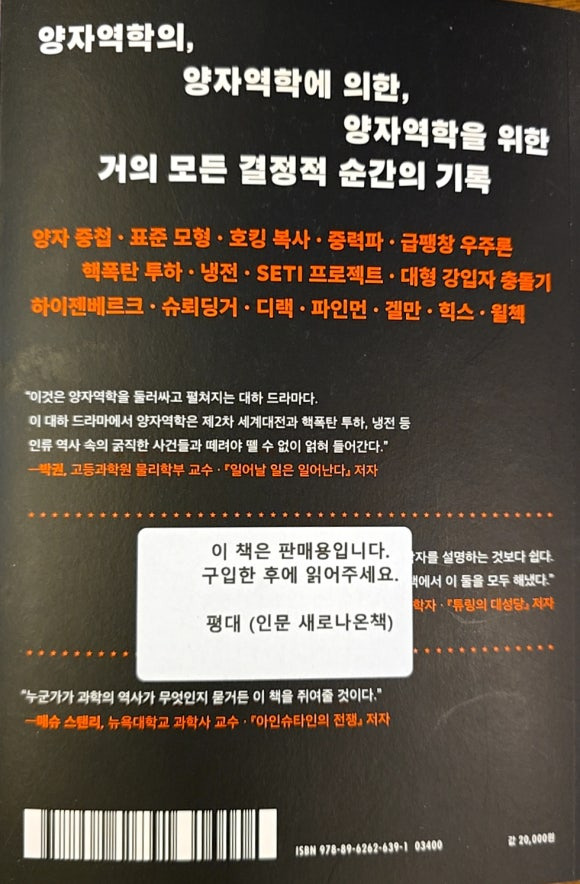 “이것은 양자역학을 둘러싸고 펼쳐지는 대하 드라마다. 이 대하 드라마에서 양자역학은 제2차 세계대전과 핵폭탄 투하, 냉전 등 인류 역사 속의 굵직한 사건들과 떼려야 뗄 수 없이 얽혀 들어간다.”
