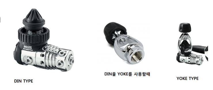 근데 유럽이나 미국의 텍, 사이드 마운트 다이버들은 거의 din 타입을 사용하고 있어